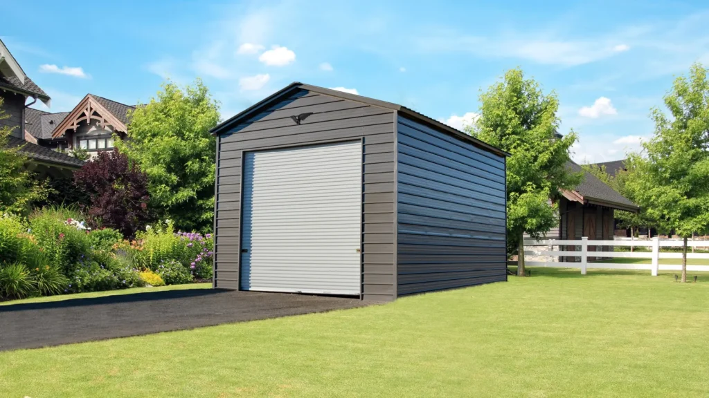 The 18x25x14 Metal Garage with a vertical roof offers ample space for storage and protection for your vehicles or equipment. Durable and stylish, it’s the perfect addition to any property.
