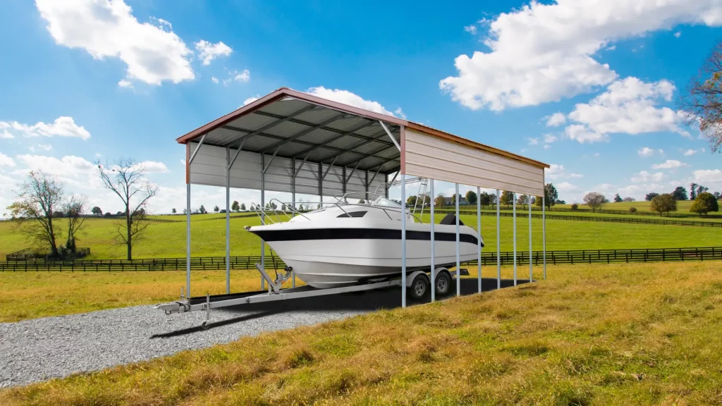 Protect your vehicle from the elements with our 20x35x12 Metal Carport. Featuring a durable vertical roof design, this carport provides reliable shelter and adds a sleek look to your property.