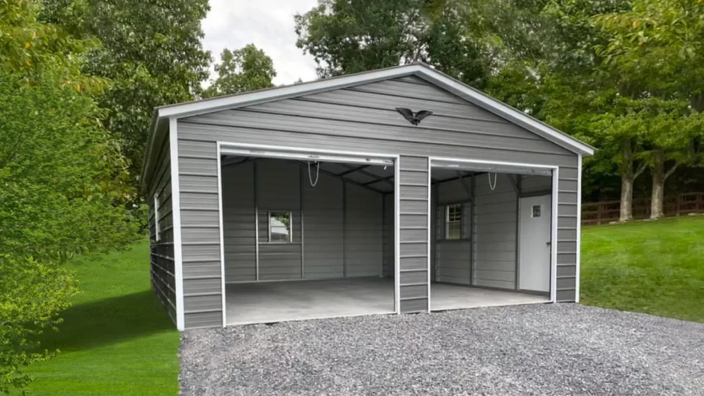 The 22x25x9 Metal Garage with a vertical roof offers ample space for storage and protection for your vehicles or equipment. Durable and stylish, it’s a perfect addition to any property.