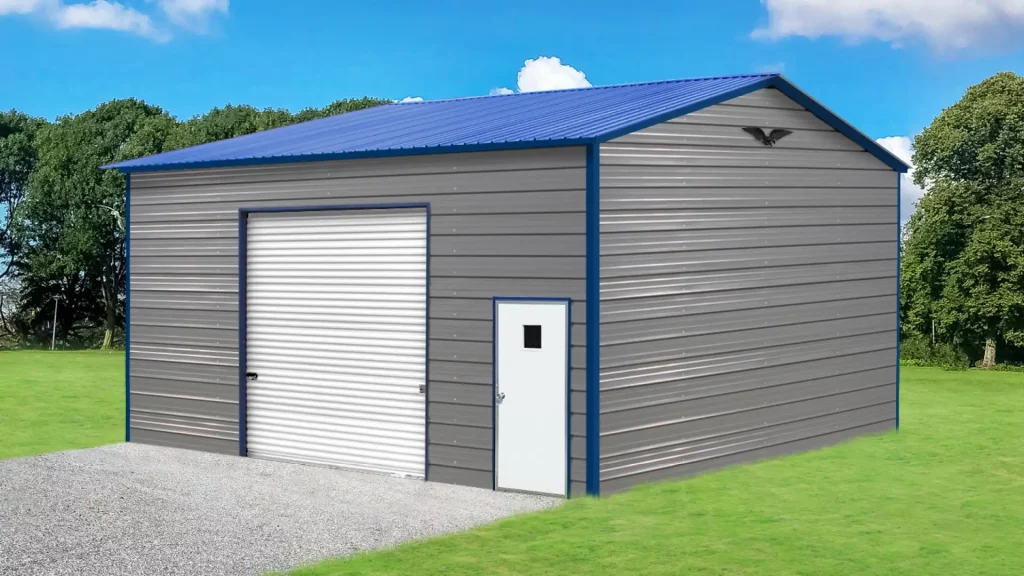 The 24x25x12 Metal Garage with a vertical roof offers ample space for storage and protection for your vehicles or equipment. Durable and stylish, it’s the perfect addition to any property.