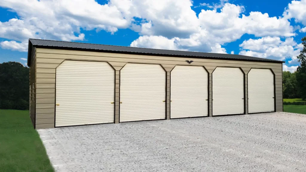 The 24x60x12 Metal Garage with a vertical roof offers ample space for storage and protection for your vehicles or equipment. Durable and stylish, it’s the perfect addition to any property.