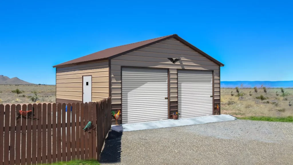 The 26x20x9 Metal Garage with a vertical roof offers ample space for storage and protection for your vehicles or equipment. Durable and stylish, it’s a perfect addition to any property.