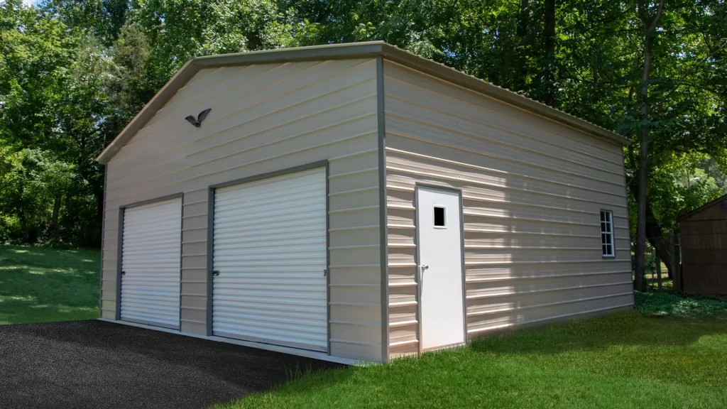 The 26x25x12 Metal Garage with a vertical roof offers ample space for storage and protection for your vehicles or equipment. Durable and stylish, it’s a perfect addition to any property.