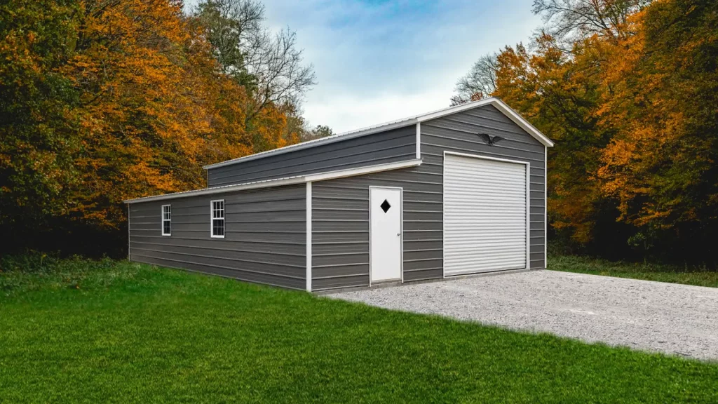 26x40x12/7 Metal Garage with 10′ Lean-To – Vertical Roof