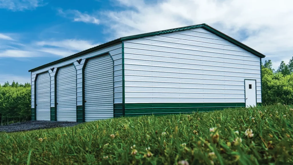 The 30x40x11 Metal Garage with a vertical roof offers ample space for storage and protection for your vehicles or equipment. Durable and stylish, it’s the perfect addition to any property.