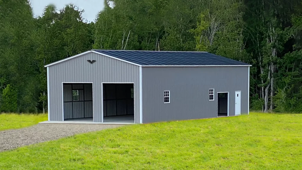 The 30x55x14 Metal Garage with a vertical roof offers ample space for storage and protection for your vehicles or equipment. Durable and stylish, it’s the perfect addition to any property.