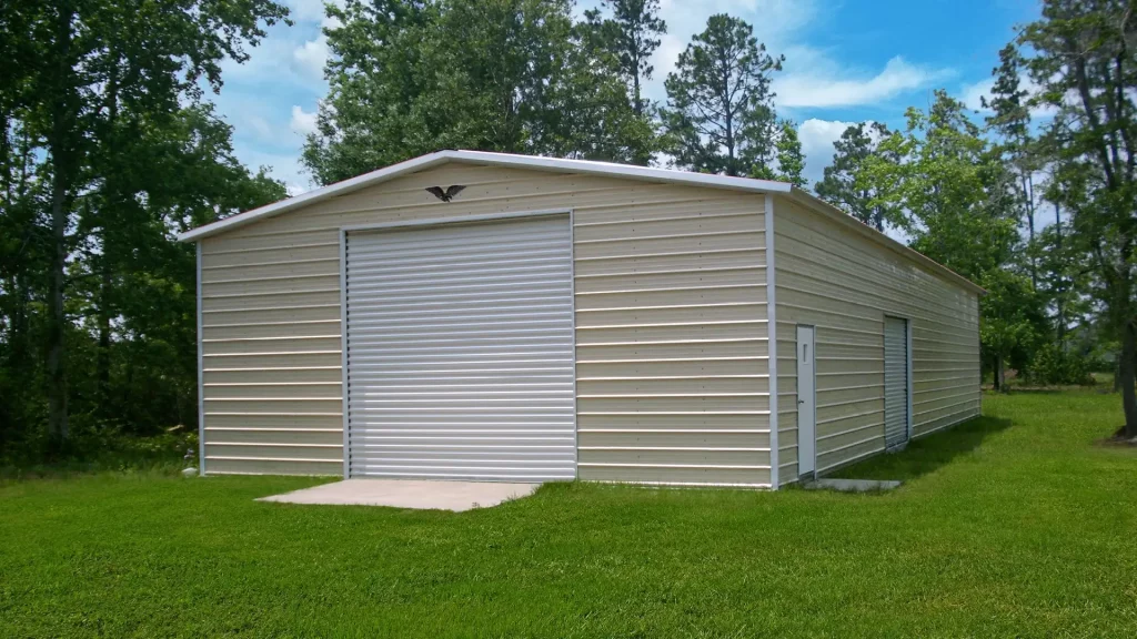 The 30x80x12 Metal Garage with a vertical roof offers ample space for storage and protection for your vehicles or equipment. Durable and stylish, it’s the perfect addition to any property.