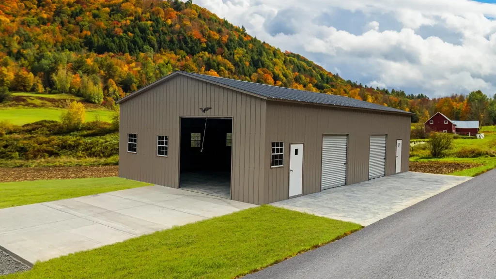 The 32x50x12 Metal Garage with a vertical roof offers ample space for storage and protection for your vehicles or equipment. Durable and stylish, it’s a perfect addition to any property.