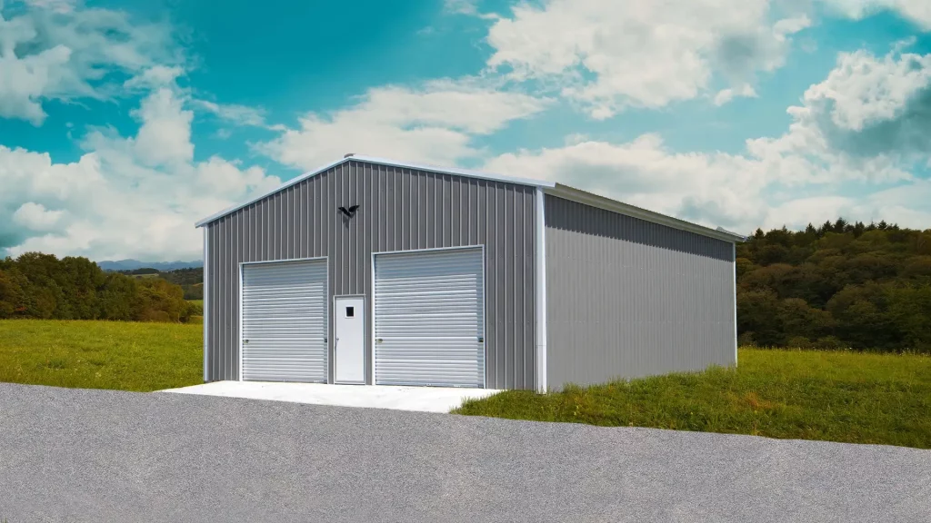 The 34x45x14 metal commercial building with a vertical roof offers durability and ample space for your business needs. Perfect for storage or as a workshop.