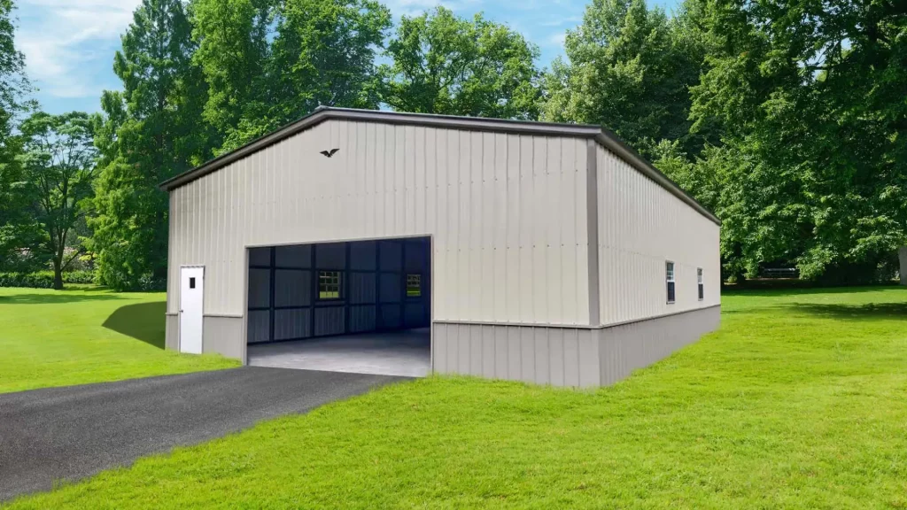 The 34x50x13 Metal Commercial Building with a vertical roof is the ultimate solution for your business needs. Crafted with durability in mind, this commercial building offers a sturdy structure that can withstand the test of time. With ample space, it is perfect for storage or as a workshop, allowing you to efficiently organize your business essentials. The vertical roof design not only adds a touch of elegance but also ensures excellent water and snow runoff, making it ideal for any weather conditions. Invest in this metal commercial building and experience the perfect blend of functionality and style.