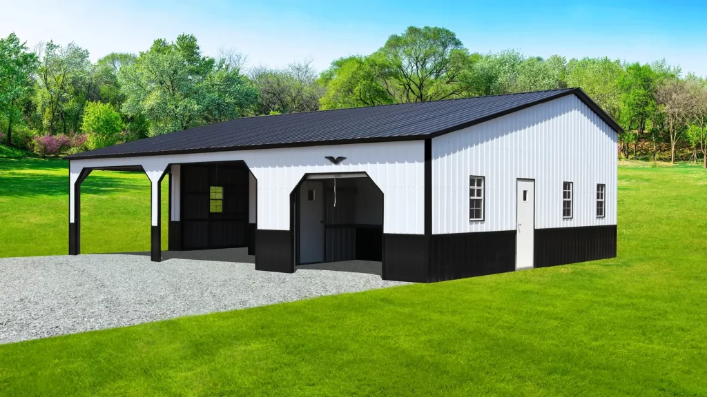 The 36x40x12 Metal Garage with a vertical roof offers ample space for storage and protection for your vehicles or equipment. Durable and stylish, it’s the perfect addition to any property.