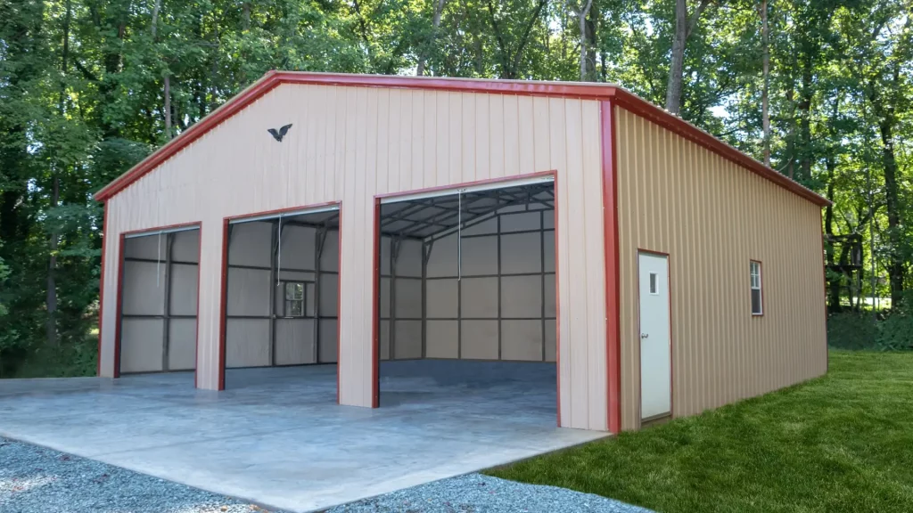 The 40x35x12 Metal Garage with a vertical roof offers ample space for storage and protection for your vehicles or equipment. Durable and stylish, it’s a perfect addition to any property.