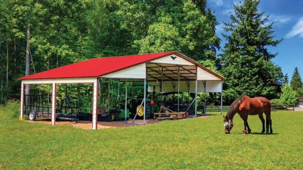 The 42x25x11 Metal Barn with 2FT Lean-To – Vertical Roof is the ultimate storage solution for your valuable belongings. With its durable vertical roof design, this barn offers superior protection against harsh weather conditions, ensuring that your items remain safe and secure. The spacious interior provides ample room for storing large equipment, vehicles, or even setting up a workshop. The 2FT Lean-To adds extra storage space, perfect for keeping smaller items organized. Constructed with high-quality metal, this barn is built to last, offering long-term durability and peace of mind. Whether you need a reliable storage solution for your farm equipment or a shelter for your vehicles, this metal barn is the perfect choice.